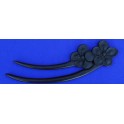 Geschnitzte Haarforke aus schwarzbraunem Ebenholz, mit einseitigem Blütenmotiv, gewachst, Länge 14 cm.