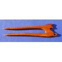 Handgefertigte, kurze Haarforke aus rotbraunem Pao Rosa, gewachst, Länge 12,5 cm.