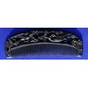 Maschinell geschnitzter Chakate Preto Frsierkamm, schwarz lackiert, feine Zahnung, Länge 15,5 cm, Zahnabstand 1,5 mm. (mit Seidenbeutel)