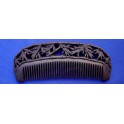 Maschinell geschnitzter Chakate Preto Frisierkamm, poliert und dünn lackiert, feine Zahnung, Länge 13,5 cm, Zahnabstand 1,5 mm. (mit Seidenbeutel)