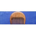 Fein gezahnter Taschenkamm mit halbrundem Rücken, aus sehr hartem, dunkel-braun gemasertem Panga Panga, Höhe 8 cm, Länge: 9,5 cm, Zahnabstand 1,7 mm.
