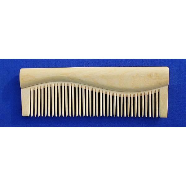 fein gezahnter Frisierkamm aus blass-gelben Menasi (= Planchonella obovata) mit dickem Rücken, Länge: 13,5 cm, Zahnabstand 1,2 mm