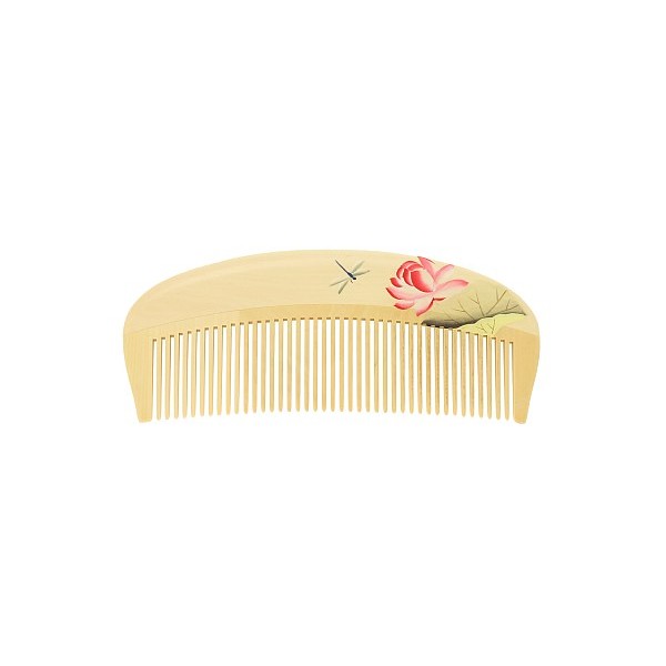 poliertes Buchsbaumholz, handbemalt und gewachst, Länge 12 cm, Zahnabstand 1,25 mm. In ansprechender Geschenkbox und kleinem Seidenbeutel.