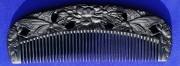 Maschinell geschnitzter Chakate Preto Frsierkamm, schwarz lackiert, feine Zahnung, Länge 15,5 cm, Zahnabstand 1,5 mm. (mit Seidenbeutel)