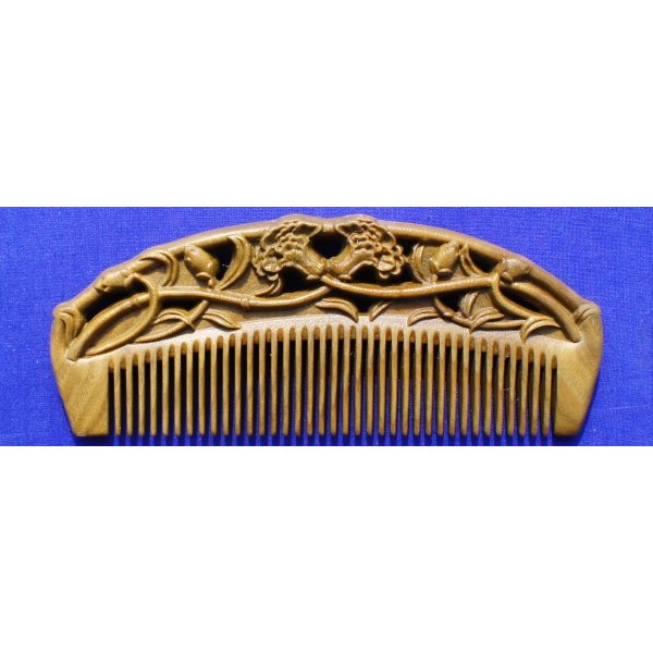 Maschinell geschnitzter Palo Santo Kamm, poliert und dünn lackiert, feine Zahnung, Länge 14 cm, Zahnabstand 1,5 mm.(mit Seidenbeutel)