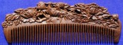 Maschinell geschnitzter Frisierkamm aus Panga Panga, poliert und dünn lackiert, feine Zahnung, Länge 16 cm, Zahnabstand 1,5 mm. (mit Seidenbeutel)