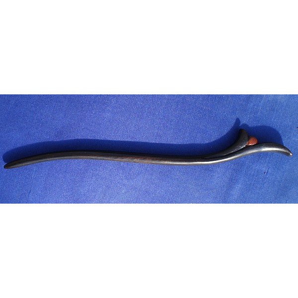 Handgefertigte Haarnadel aus schwarzbraunem Ebenholz mit rotbrauner Pao Rosa Intarsie, mit Holzlasur behandelt, leicht glänzend, Länge 18 cm