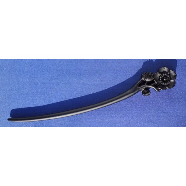 Gebogene Haarnadel aus schwarz lackiertem Holz, Länge 18 cm