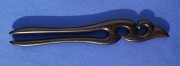 Schlanke Haarforke aus schwarzbraunem Ebenholz, geölt, Länge 15 cm.
