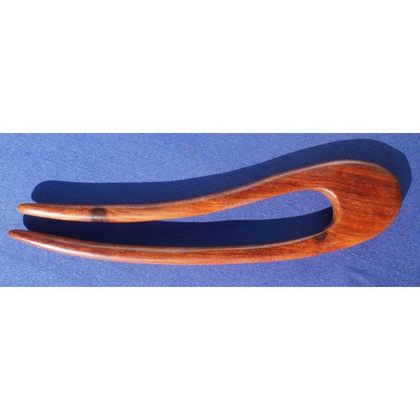 Handgefertigte, geschwungene Haarforke aus rotbraunem Pao Rosa, gewachst, Länge 16 cm.