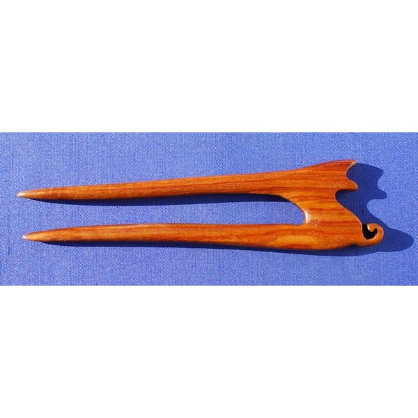 Handgefertigte, kurze Haarforke aus rotbraunem Pao Rosa, gewachst, Länge 12,5 cm.