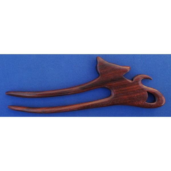 Handgefertigte, Haarforke aus rotbraunem Pao Rosa, gewachst, Länge 16 cm.