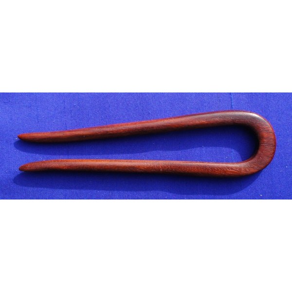 Kurze Haarforke aus rotbraunem Pao Rosa, gewachst, Länge 13 cm.