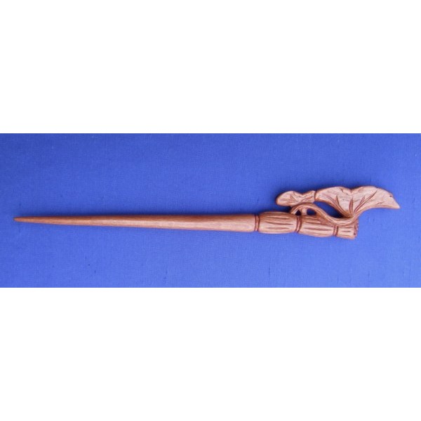 Handgefertigte Haarnadel aus rotbraunem Pfirsichbaumholz, dünn lackiert, Länge 18 cm