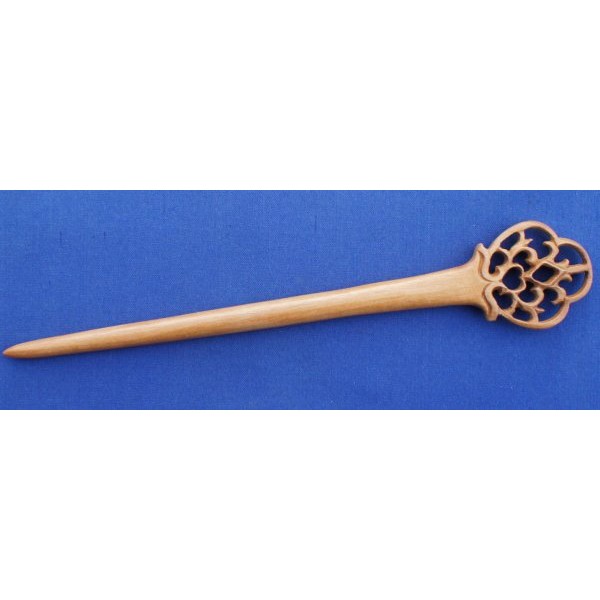 Handgefertigte Haarnadel aus braunem Pfirsichbaumholz, dünn lackiert, Länge 17,5 cm