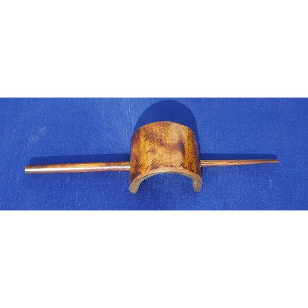 Aus Nepal: Kleine Haarspange aus braun gefärbten und polierten Yakknochen, Länge (ohne Stab): 4 cm, Breite: 3,5 cm, Max Abstand zwischen Stab und Spange: 1,3 cm (Stab ist 15 cm lang und auch als Haarnadel verwendbar, Achtung Knochen ist sorgsam wie Porzelan zu handhaben)