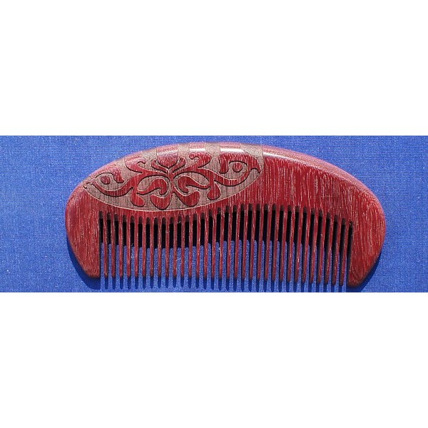 Feinzahniger Taschenkamm aus violett-farbigem Amaranth-Holz mit glatt polierter Oberfläche, ausgesägter Zahngrund, Länge ca.12,5 cm, Zahnabstand 1,5 mm mit sehr dünnen Zähnen. (fällt blasser aus)