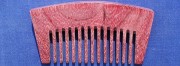 auffällig violett-farbiges Amaranth-Holz mit glatt polierter Oberfläche, ausgesägter Zahngrund, Länge 11,5 cm, Zahnabstand 3 mm