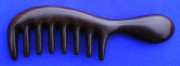 Komplett ausgeschliffener sehr grob gezahnter Griffkamm aus hartem, schwarz-braunem Chakate Preto, zum Schutz dünn lackiert, Länge: 17 cm, Zahnabstand 6 mm.