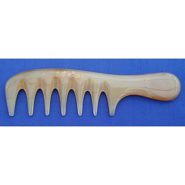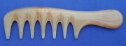 Griffkamm mit grober, weit ausgeschliffener Zahnung (aber nicht gerundet) aus bernsteinfarbenen Schafhorn, Länge ca. 18,5 cm, Zahnabstand in der Mitte ca. 11 mm