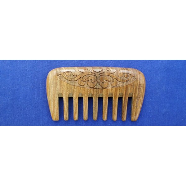 Weitzahniger Taschenkamm aus duftendem Palo Santo mit Gravur-relief beidseitig, Länge: ca. 10 cm, Zahnabstand 5 mm