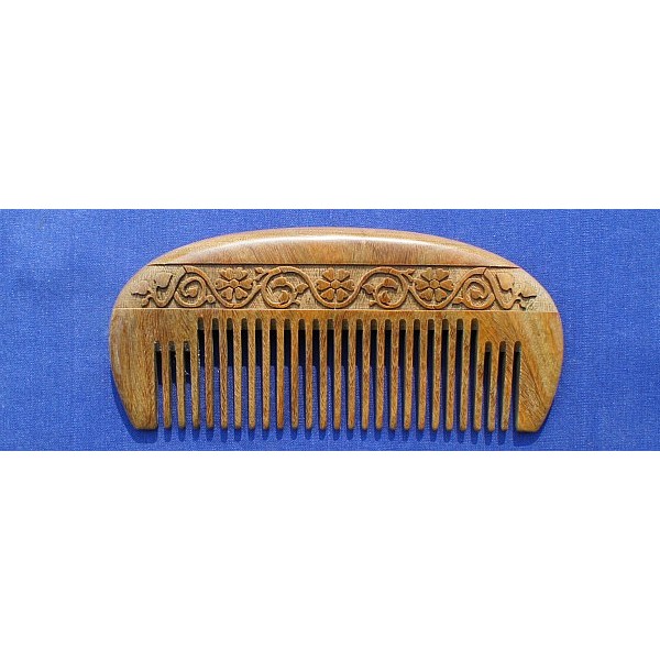 Taschenkamm aus duftendem Palo Santo mit Gravur-relief beidseitig, mittlere Zahnung, Länge: ca. 12,5 cm, Zahnabstand 2 mm