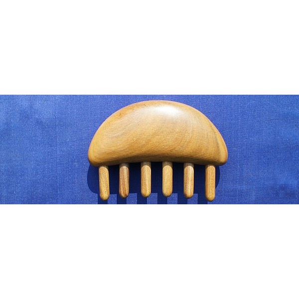 Massagekamm aus duftendem Palo Santo mit eingestzten runden Stiften und dickem, griffigen Rücken, bestens geeignet zur Kopfhautmassage Länge: ca. 10,5 cm, Zahnabstand 9 mm