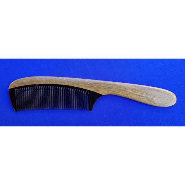 feingezahnter Griffkamm aus Palo Santo und schwarzes Büffelhorn verleimt, schlanke, dünne Form, Länge 18,5 cm, Zahnabstand 1,25 mm