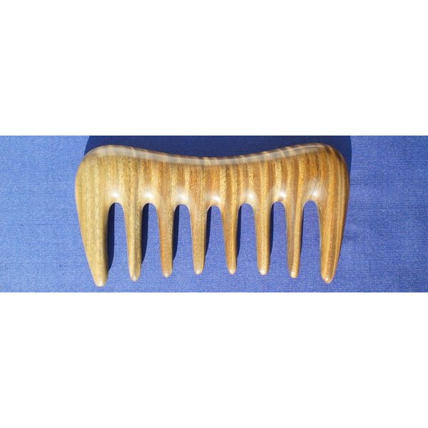 Sehr weit gezahnter Taschenkamm aus duftendem Palo Santo mit geschmeidig ausgeschliffener Zahnung, Länge: ca. 12 cm, Zahnabstand ca. 10 mm