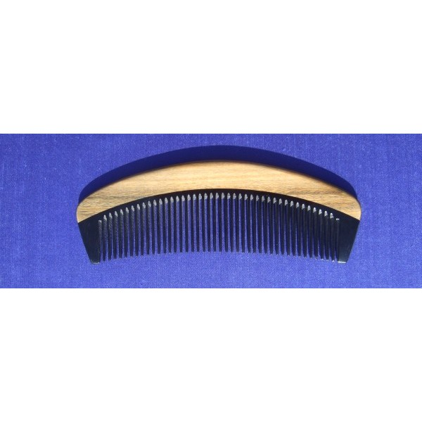Kleiner Frisierkamm, verleimt aus Palo Santo und Büffelhorn mit feiner Zahnung, Länge: 14,5 cm, Zahnabstand 1,5 mm