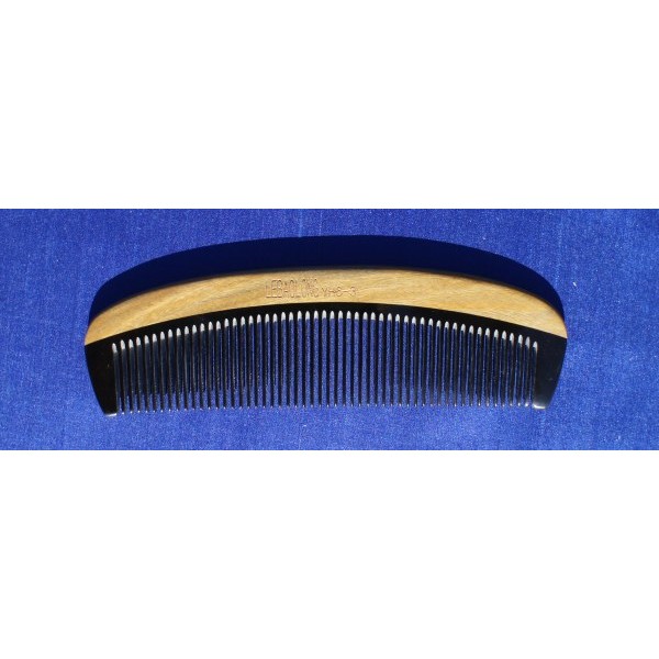 Kleiner Taschenkamm, verleimt aus Palo Santo und Büffelhorn mit sehr feiner Zahnung, Länge: 14 cm, Zahnabstand 1,2 mm