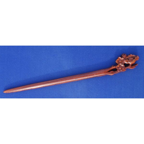 Geschnitzte Haarnadel aus rotbraunem Pao Rosa, Länge 17,5 cm