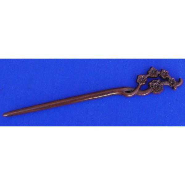Geschnitzte Haarnadel aus rotbraunem Pao Rosa, dünn lackiert, Länge 19 cm