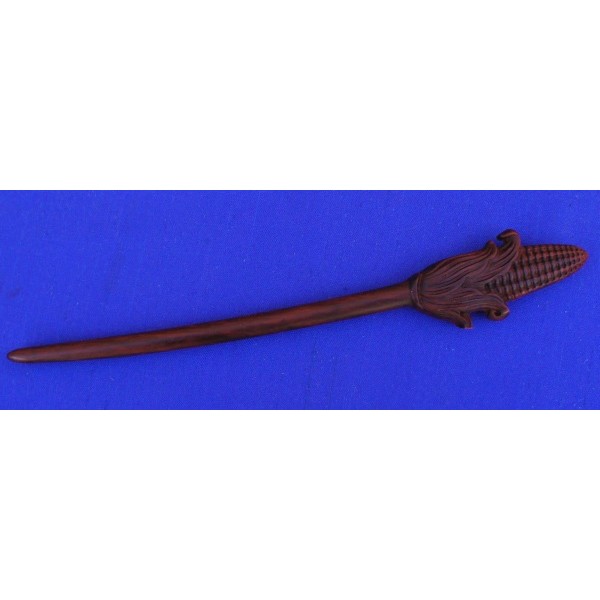 Geschnitzte Haarnadel aus rotbraunem Pao Rosa, dünn lackiert, Länge 18 cm