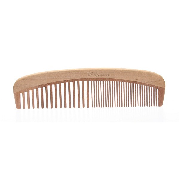 Stabiler Kamm aus verleimten Pfirsichbaumholz mit weiter und enger Zahnung, Länge 20 cm, Zahnzwischenraum 3 / 1,5 mm