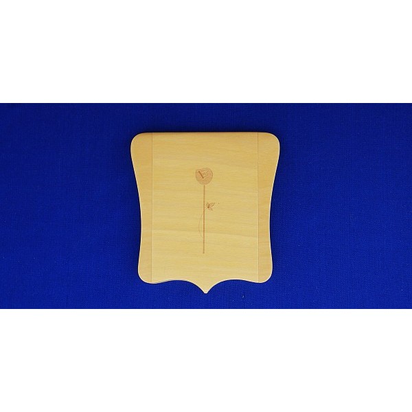 Spiegel aus Garapa-Holz mit Gravur, je Modell sind immer die Motive "Blume" oder "Schmetterling" lieferbar, mit praktischen Stoffbeutel zur Aufbewahrung. Maße: 73 x 75 mm