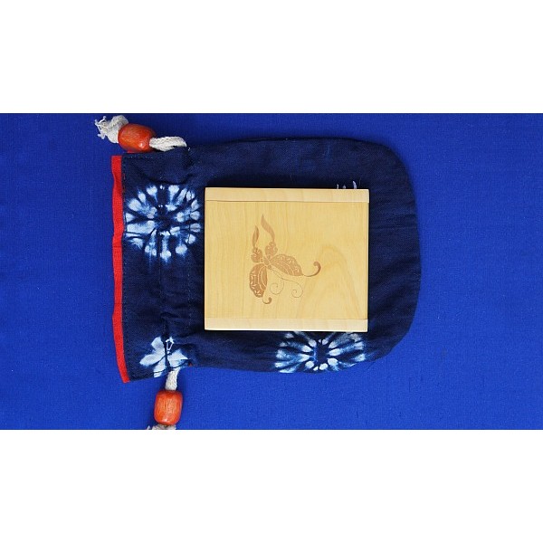 Spiegel aus Garapa-Holz mit Gravur, je Modell sind immer die Motive "Blume", "Bambus" und "Schmetterling" lieferbar, mit praktischen Stoffbeutel zur Aufbewahrung. Maße: 65 x 75 mm