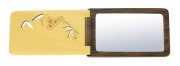 Zebraspiegel mit zweifarbigen Holzstreifen (Garapa und Pfirsichbaumholz), Maße: 6 x 7 cm