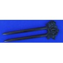 Carved Hairpin with flower pattern, black ebony wood, waxed, length 16.5 cm
