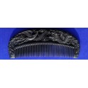 maschine made carved black chakate comb, black lacquered, length 13 cm, teeth gap 1.5 mm (with silk bag)