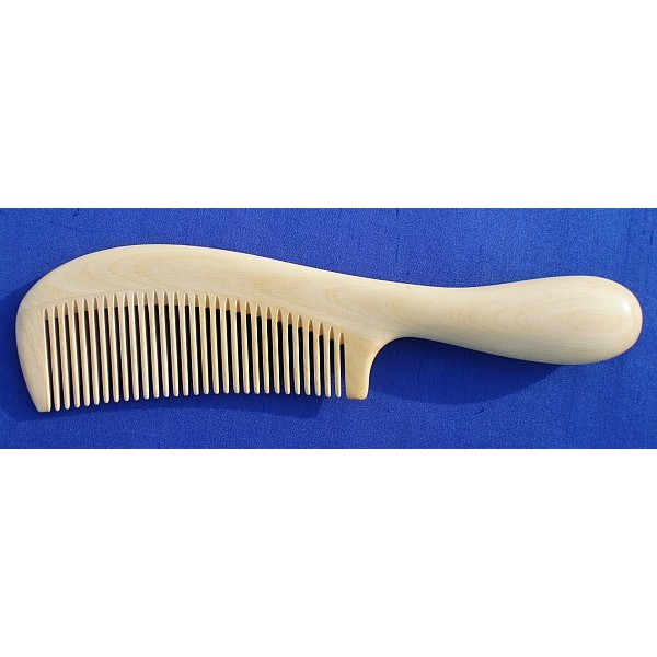 fine teeth handle comb made of bright yellow Planchonella obovata, length: 19.5 cm, teeth gap 1.2 mm