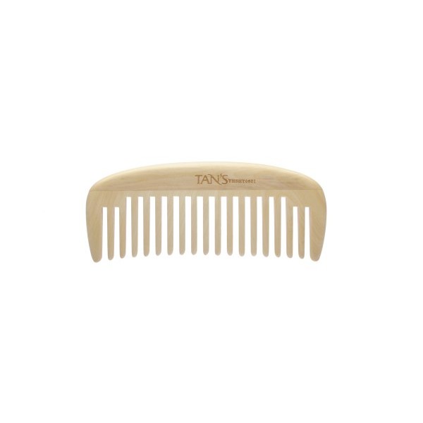 wide teeth pocket comb made of bright and smooth boxwood, length: 12 cm, teeth gap 3 mm