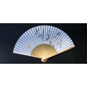 Colourful fan made of bamboo and paper, length 19.5 cm, with cotton bag