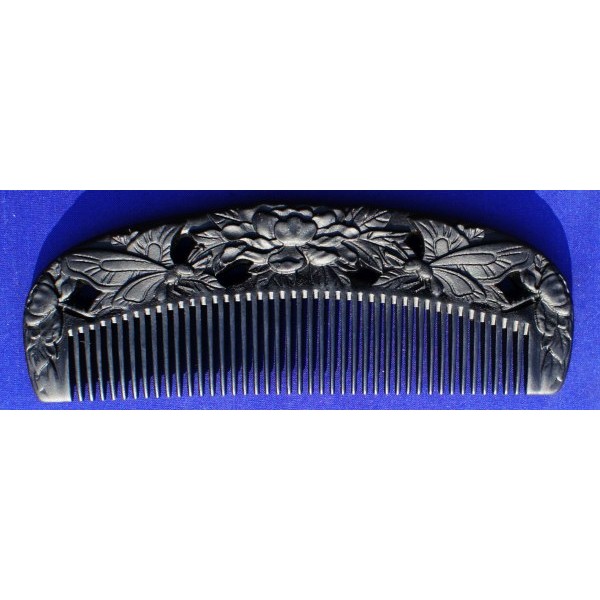 Carved Black Chakate comb, peony