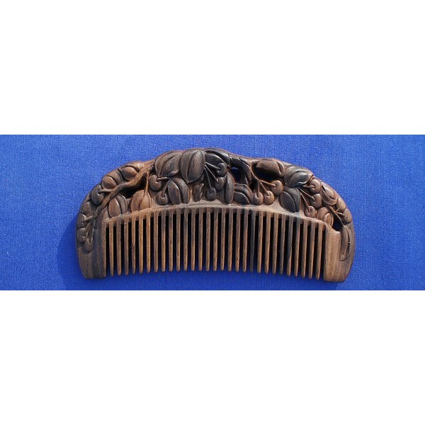maschine made carved black chakate comb, polished and oiled, length 13 cm, teeth gap 1.5 mm (with silk bag)