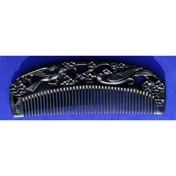 Carved Black Chakate comb, birds