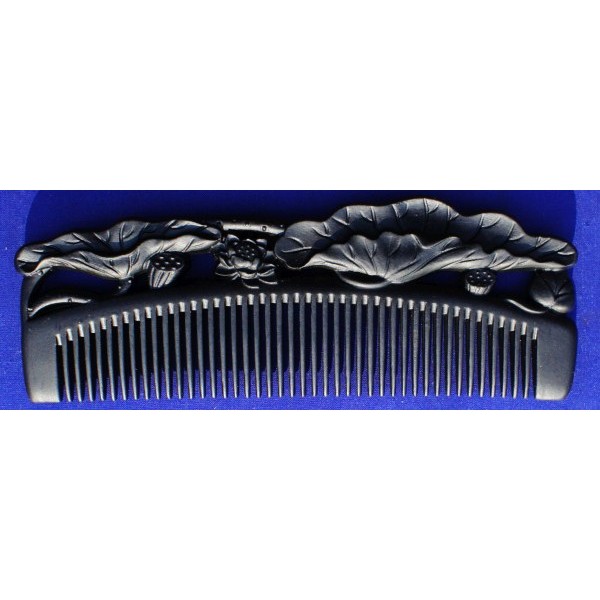 Carved Black Chakate comb, lotus