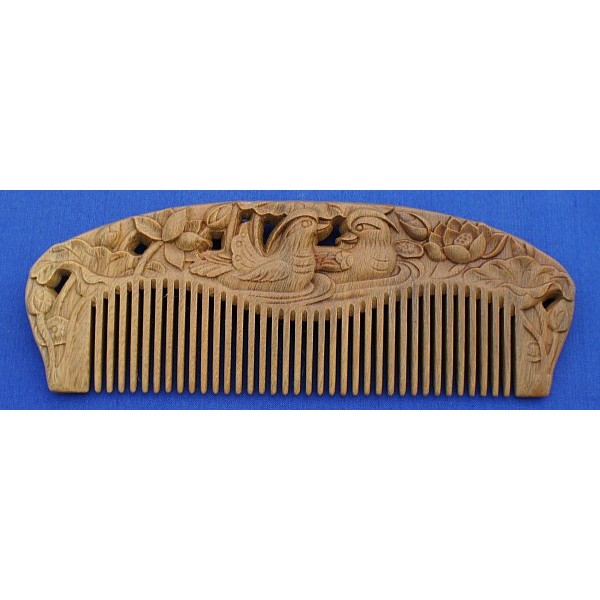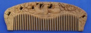 maschine made carved vera wood comb, polished and oiled, length 15.5 cm, teeth gap 1.5 mm (with silk bag)
