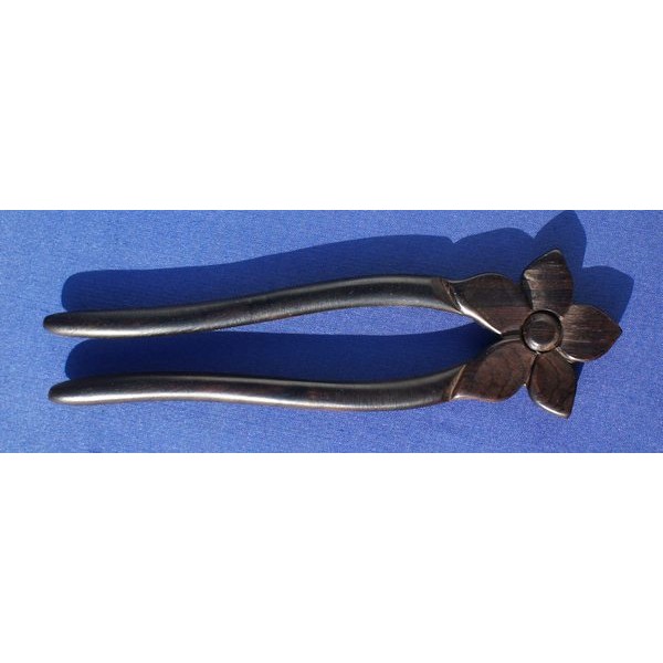 Handmade Hairpin with flower pattern on both sides, black ebony wood, oiled, length 13.5 cm