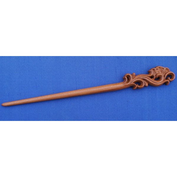 Handmade Hairpin, brown peachwood, lacquered, length 20 cm